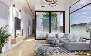 - Giếng trời thông minh: Thiết kế giếng trời có mái che tự động cảm biến, vừa lấy sáng tối đa vào mùa khô, vừa tự động đóng kín khi có hạt mưa đầu tiên.